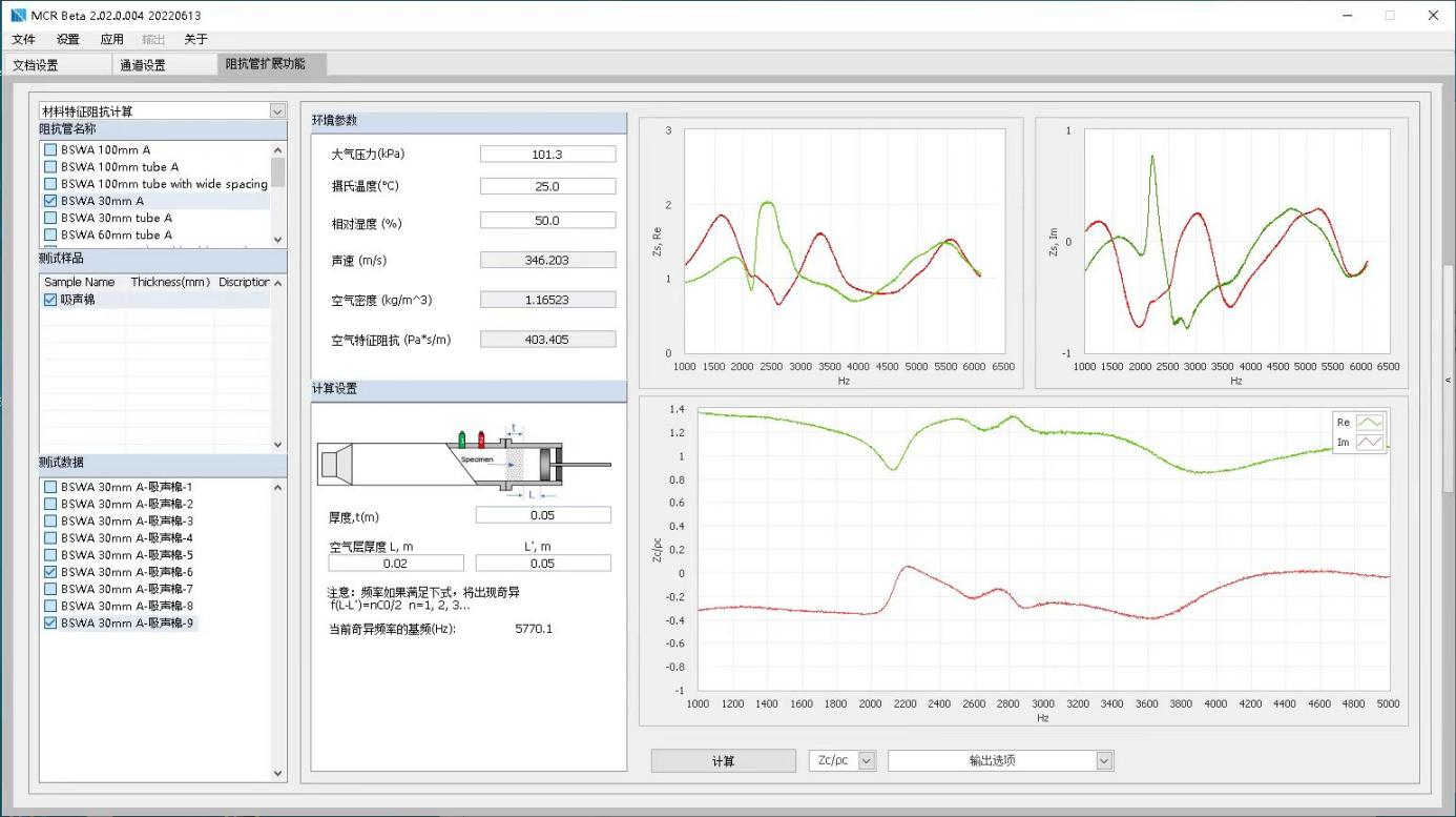 MCR-IMPS, MCR-IMPT分別對應于聲學材料的阻抗測試中的吸聲測試模…